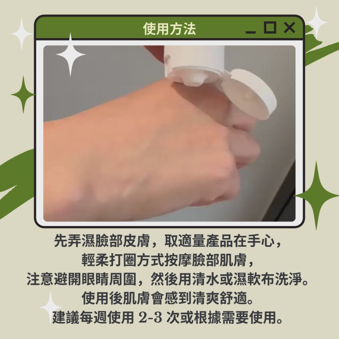 Rinse your face with water. Take an appropriate amount of product in the palm of your hand, massage your facial skin gently in circular motions, avoiding the area around your eyes. Wash off with clean water or a damp face cloth. Skin will feel refreshed and comfortable after use.